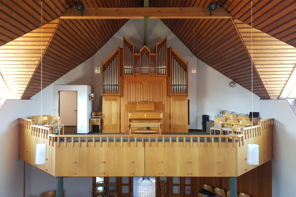 Rohrflöte 8‘, Prinzipal 4‘, [vorgesehen: Koppelflöte 4‘], Nasard 2 2/3‘, Waldflöte 2‘, Mixtur 3-4f. 2‘
